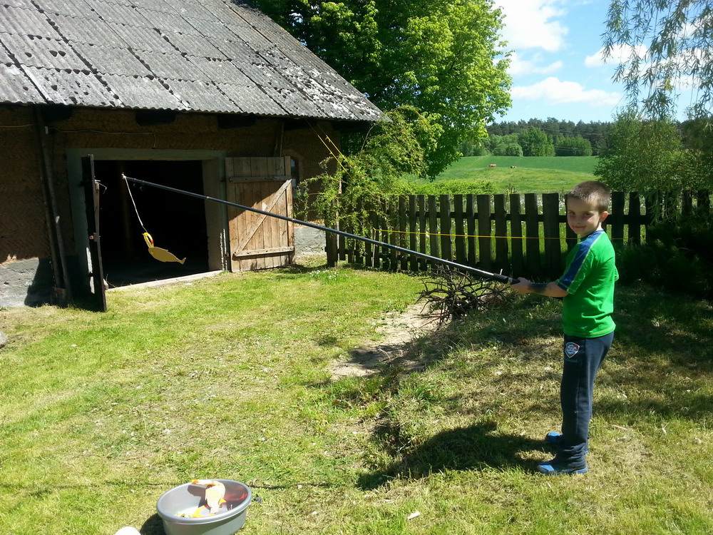 24 maja wybraliśmy się na pierwszą całodniową wycieczkę. O godzinie 9.00 wsiedliśmy do busa, który zawiózł nas do Wiatrołuży. Tu relaksowaliśmy się w otoczeniu przyrody. Niektórzy z nas po raz pierwszy byli w lesie, inni nie mogli nadziwić się widokom krów pasących się na sąsiednich łąkach. Trochę pobawiliśmy się w ulubione zabawy (nie mogło zabraknąć „dziesięciu patyków”, kapryśnej księżniczki i chusty Klanzy), przygotowaliśmy plakaty i tablicę ze zdjęciami na imprezę, która miała odbyć się za tydzień na naszym podwórku (gdzie jest zawsze ciepło;) ), zjedliśmy pyszny obiad, uratowaliśmy lotnika, który rozbił się w pobliskim lesie (jak dobrze, że tydzień temu uczyliśmy się udzielać pierwszej pomocy), poucztowaliśmy przy ognisku i dźwiękach gitarrrry. Pan Tomek z panią Renatą mieli też dla nas niespodziankę: GOFRY Z DŻEMEM! Dzię-ku-je-my!