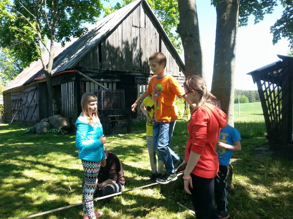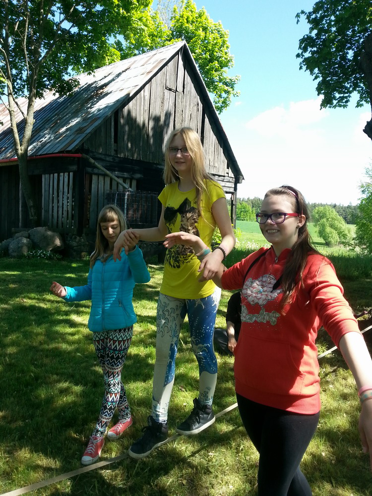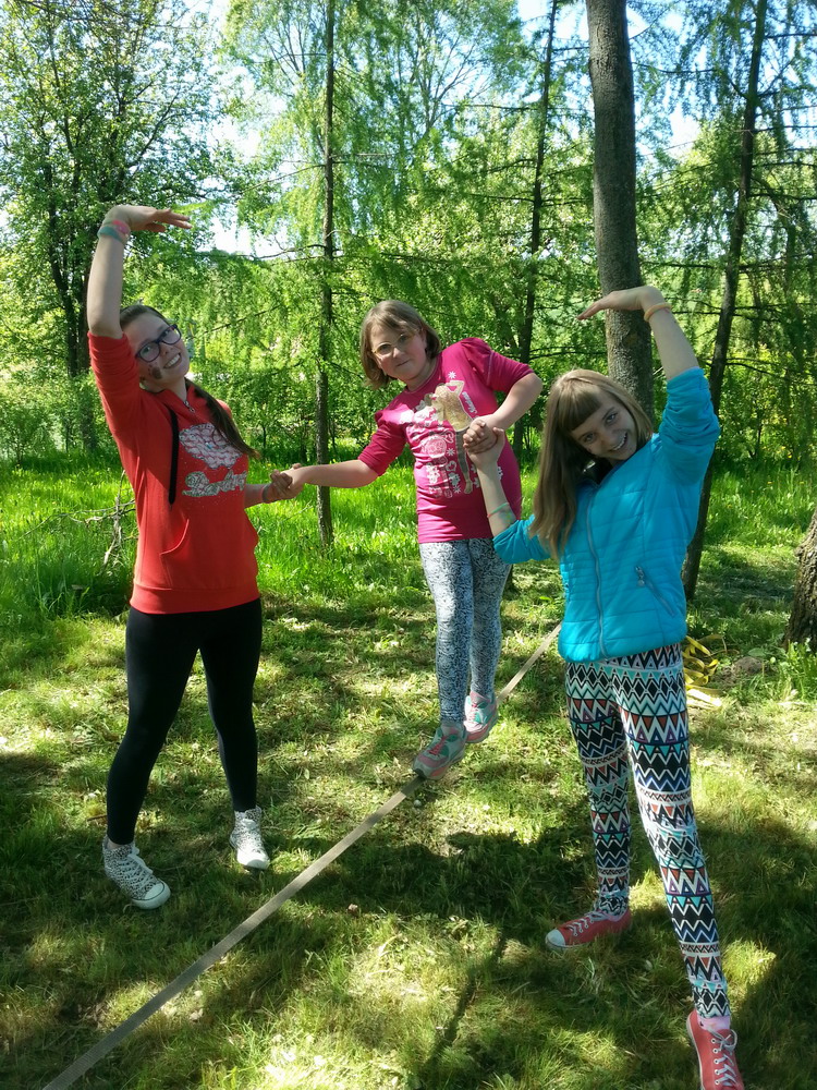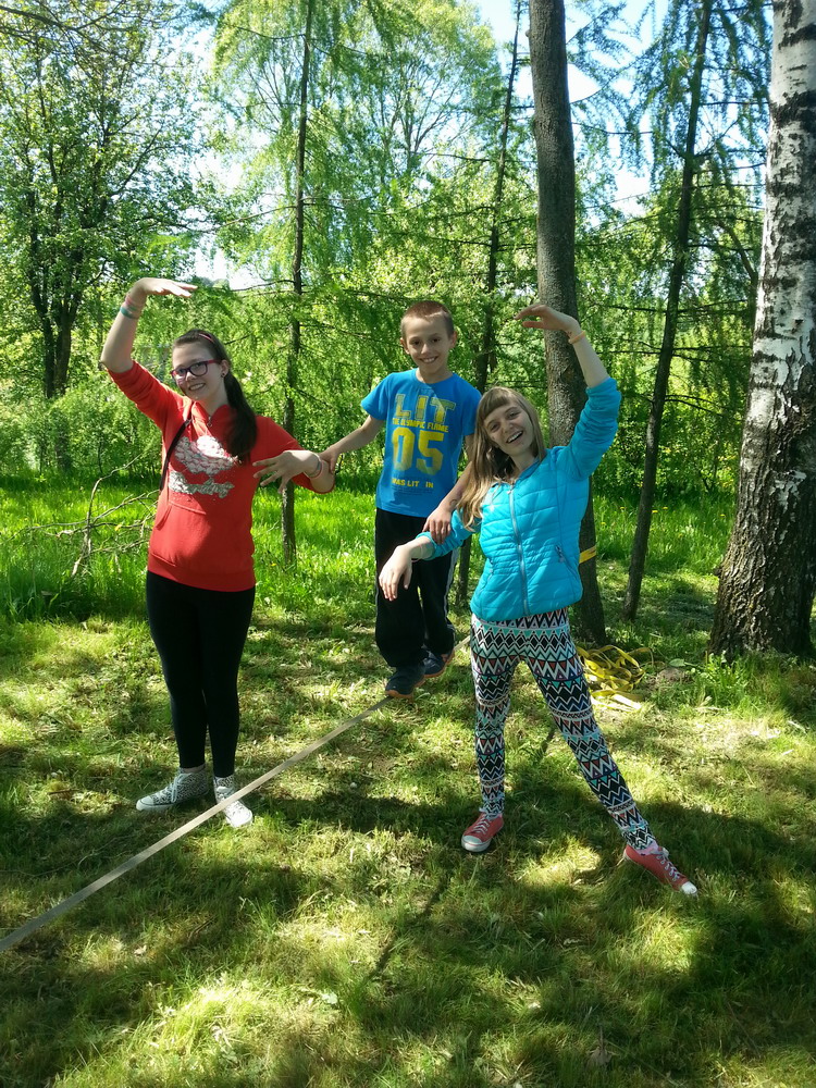 22. marca – drugiego dnia kalendarzowej wiosny – spotkaliśmy się po raz pierwszy z uczestnikami czwartej edycji projektu „Na moim podwórku jest zawsze ciepło”. Wiosny szukaliśmy w Wigierskim Parku Narodowym. Z racji tego, że w marcu jak w garncu, zarówno przyświecało nam ostre słońce, jak i dokuczało  dotkliwe zimno. Na szczęście w planach mieliśmy ognisko (oczywiście z kiełbaskami, herbatą z termosów i innymi przysmakami). Dowiedzieliśmy się, co u kogo zmieniło się podczas naszej przerwy w projekcie, powspominaliśmy wcześniejsze edycje i posnuliśmy trochę planów na kolejne spotkania. Na koniec rozpostarliśmy między drzewami slaka i każdy mógł spróbować swoich sił w chodzeniu po taśmie, około 30 cm ponad ziemią.
