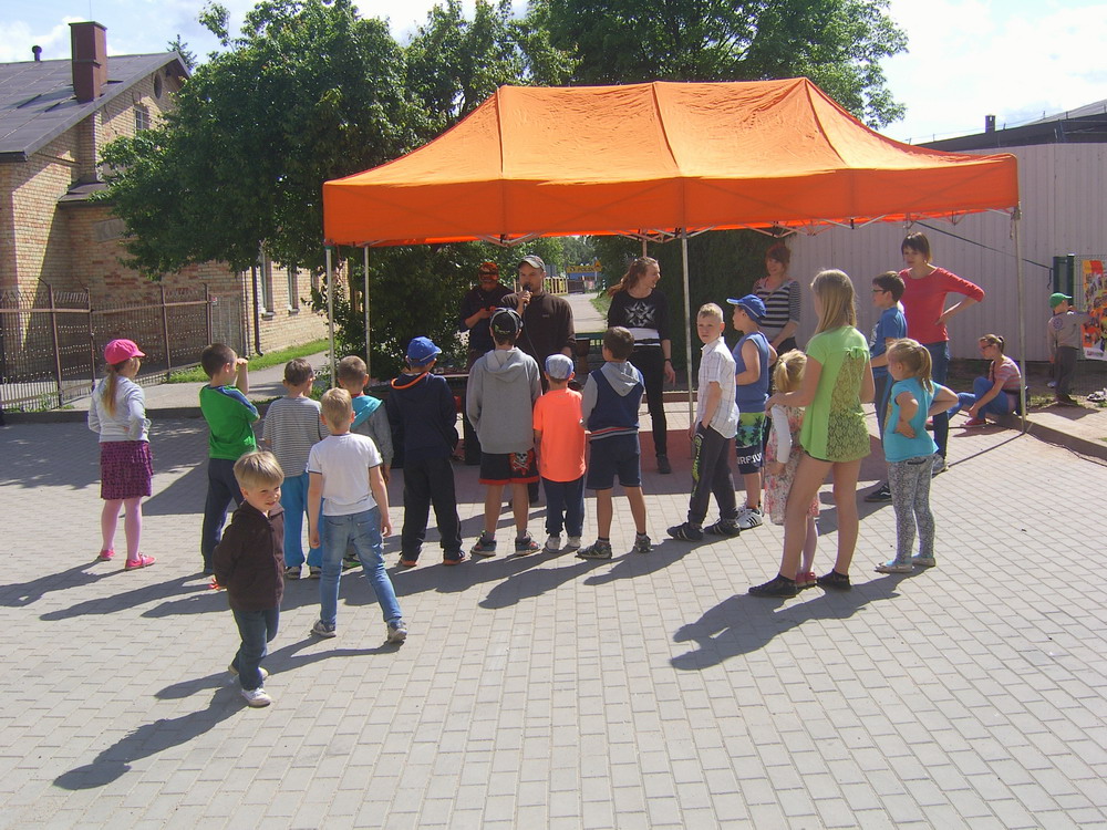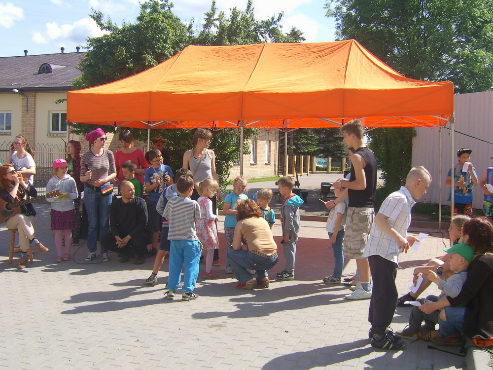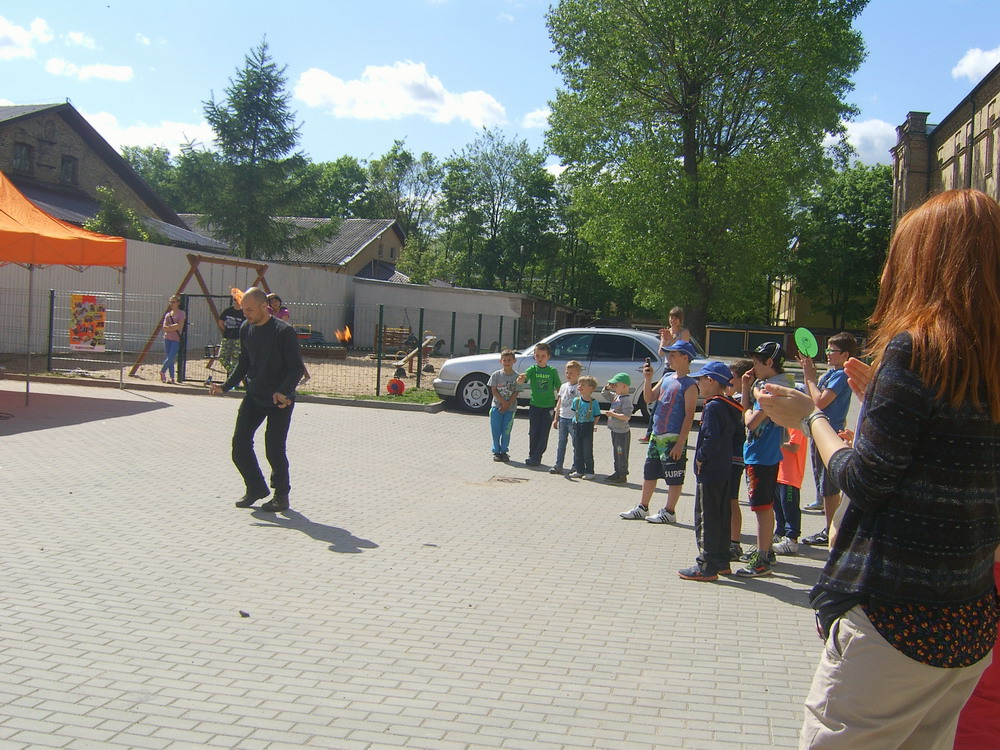 Ostatnia niedziela maja ­ 31.05.2015 rok. Ważny dzień, bo to nasze ostatnie spotkanie w tej edycji projektu. Ale tym razem wspólnie zorganizowaliśmy imprezę na naszym podwórku. Zaprosiliśmy mieszkańców ­ dużych i małych. Było bardzo muzykalnie, bo przygrywał nam DJ Boguś Selekta, a Ania Poniatowska poprowadziła warsztat gry na bębnach i przeszkadzajkach. Była też gitara i piosenka, której nauczyliśmy się na wycieczce. Na koniec było trochę smutno, bo wiemy, że to tymczasowy koniec…