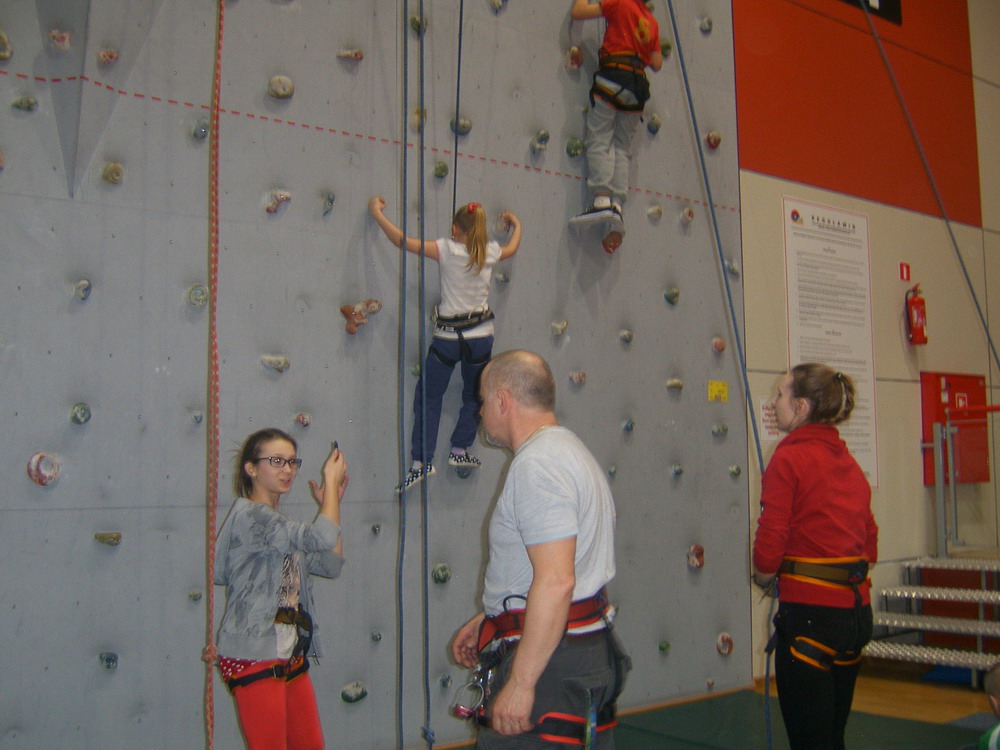 Drugie spotkanie odbyło się pięć dni później – 27. marca. Odwiedziliśmy ponownie ściankę wspinaczkową na hali OSiR. Trzeba przyznać, że atrakcja ta bardzo przypadła do gustu zarówno młodszym, jak i starszym uczestnikom. Niektórych podejrzewamy o pokrewieństwo ze Spidermanem;)
